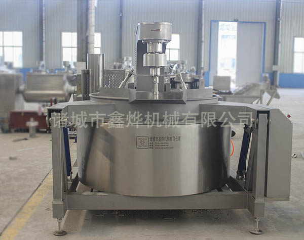 本(běn)設備有四頭攪拌、五頭攪拌和(hé)七頭攪拌,根據炒鍋容積和物料性質來(lái)決定攪拌頭的數(shù)量。無(wú)需人工翻炒,鍋體液壓傾斜高位自動出料,設備有專門的進料(liào)料鬥,可以裝配乳化器。