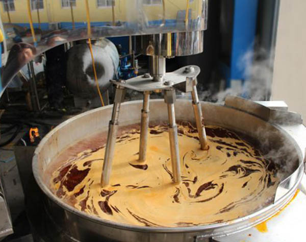 火鍋底料炒鍋采用電磁加(jiā)熱原理、微電腦控溫技術、智(zhì)能補溫技術、行(háng)星(xīng)式刮底攪拌,不粘鍋,無攪拌死角;輕觸按鈕即可(kě)實現鍋體翻轉。本機可實現自動精確控溫,控製攪拌速(sù)度(dù)及加熱時間,可解決在(zài)加工(gōng)過(guò)程(chéng)中各工藝參數依靠操(cāo)作者經驗(yàn)來控製產品質量的問題,避免在加工過程中(zhōng)人為因(yīn)素對產品質量產生影(yǐng)響,提高工藝可控性,保證產品質量。